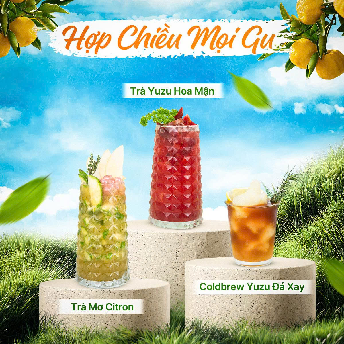Nếu quán bạn chuộng trà, đừng ngại kết hợp trà xanh nhài với mứt Yuzu, mận đỏ, và một ít mứt quế hoa. Hương trà dịu dàng quyện cùng vị chua ngọt nhẹ của Yuzu và vị mận đậm đà sẽ làm nên một ly trà thanh tao nhưng đầy cá tính. Mỗi món đều là một câu chuyện, một chất liệu để bạn kể với khách hàng qua từng ly nước.